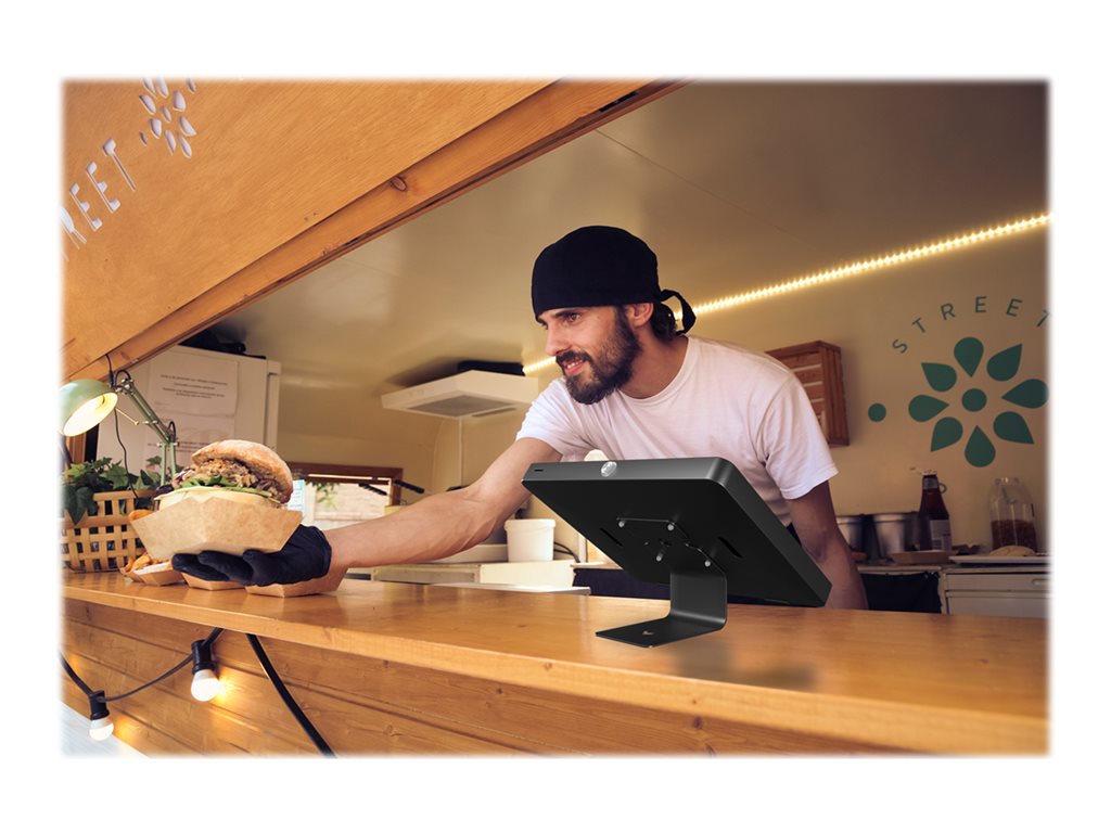 Stand - for tablet - lockable - steel - black - screen size: up to 11" - mounting interface: 75 x 75 mm - wall-mountable, counter top, desk-mountable